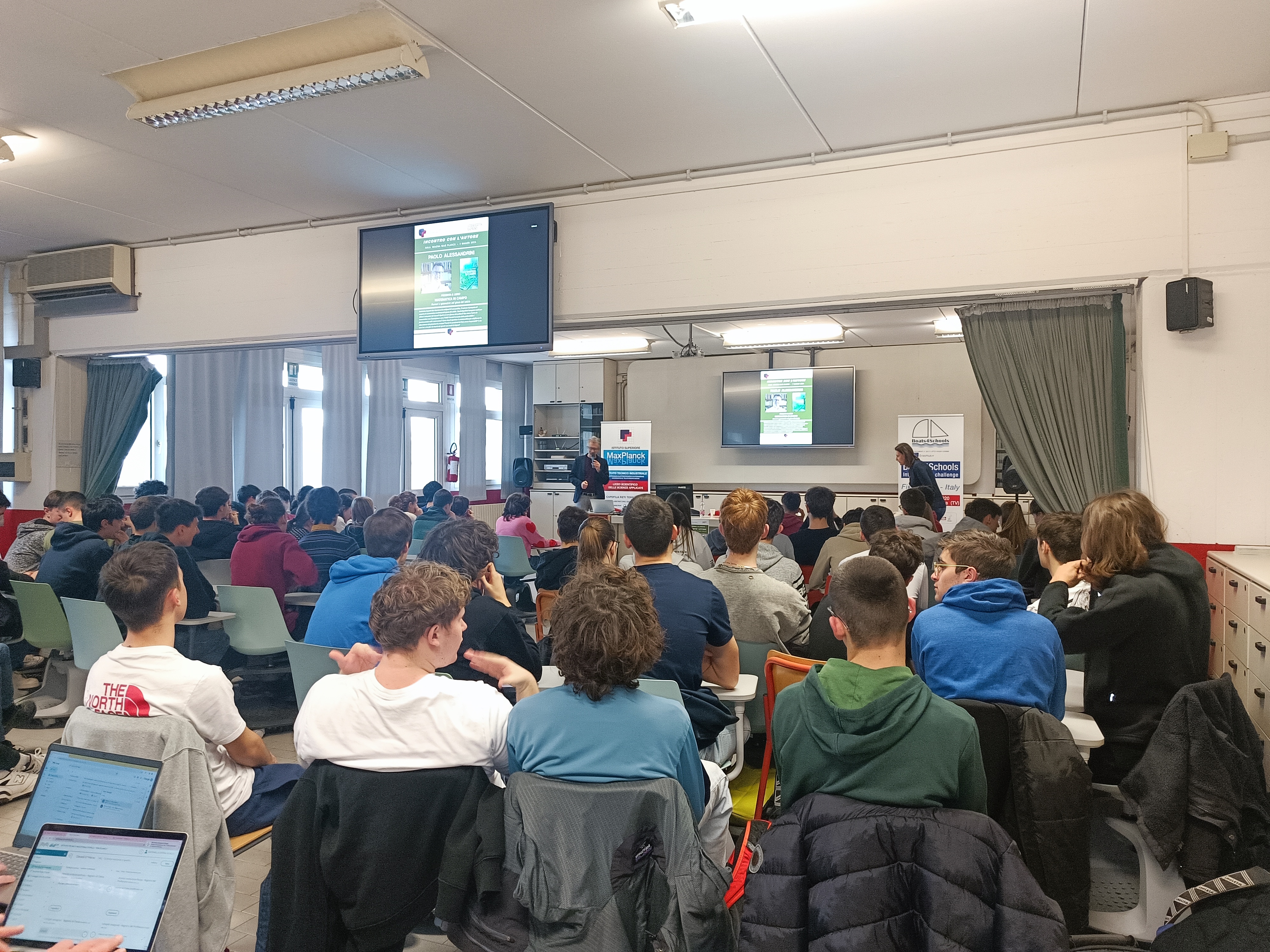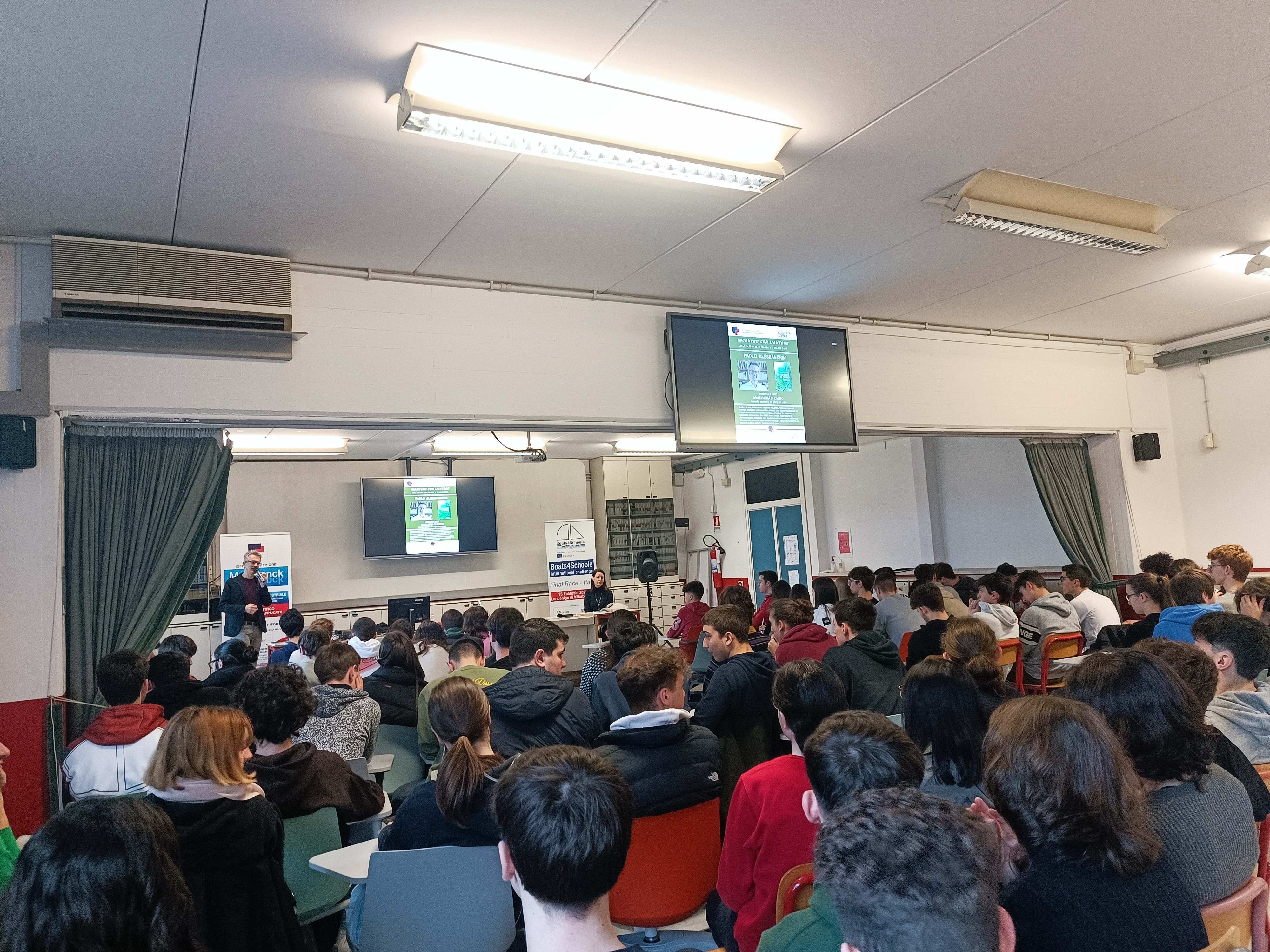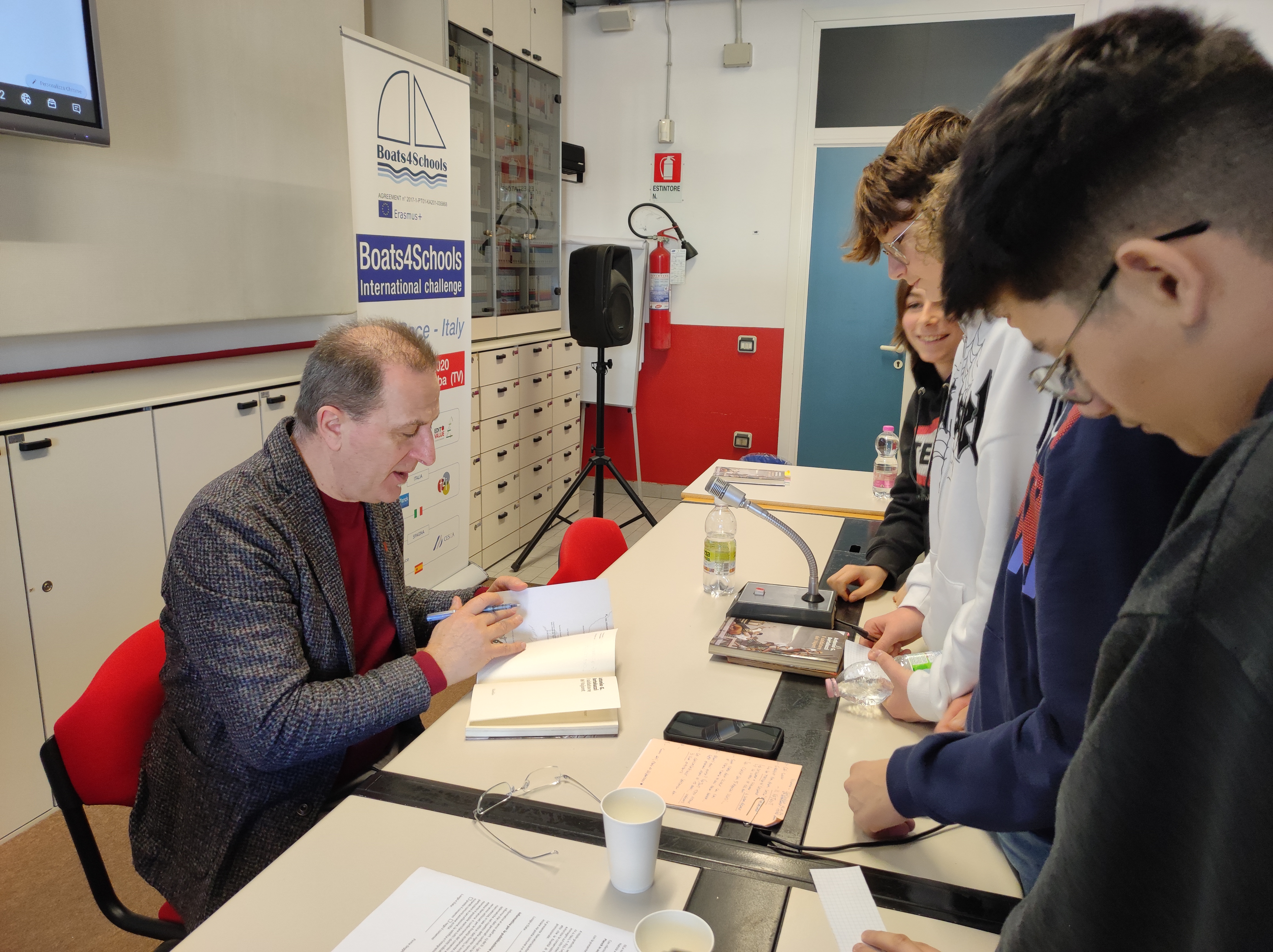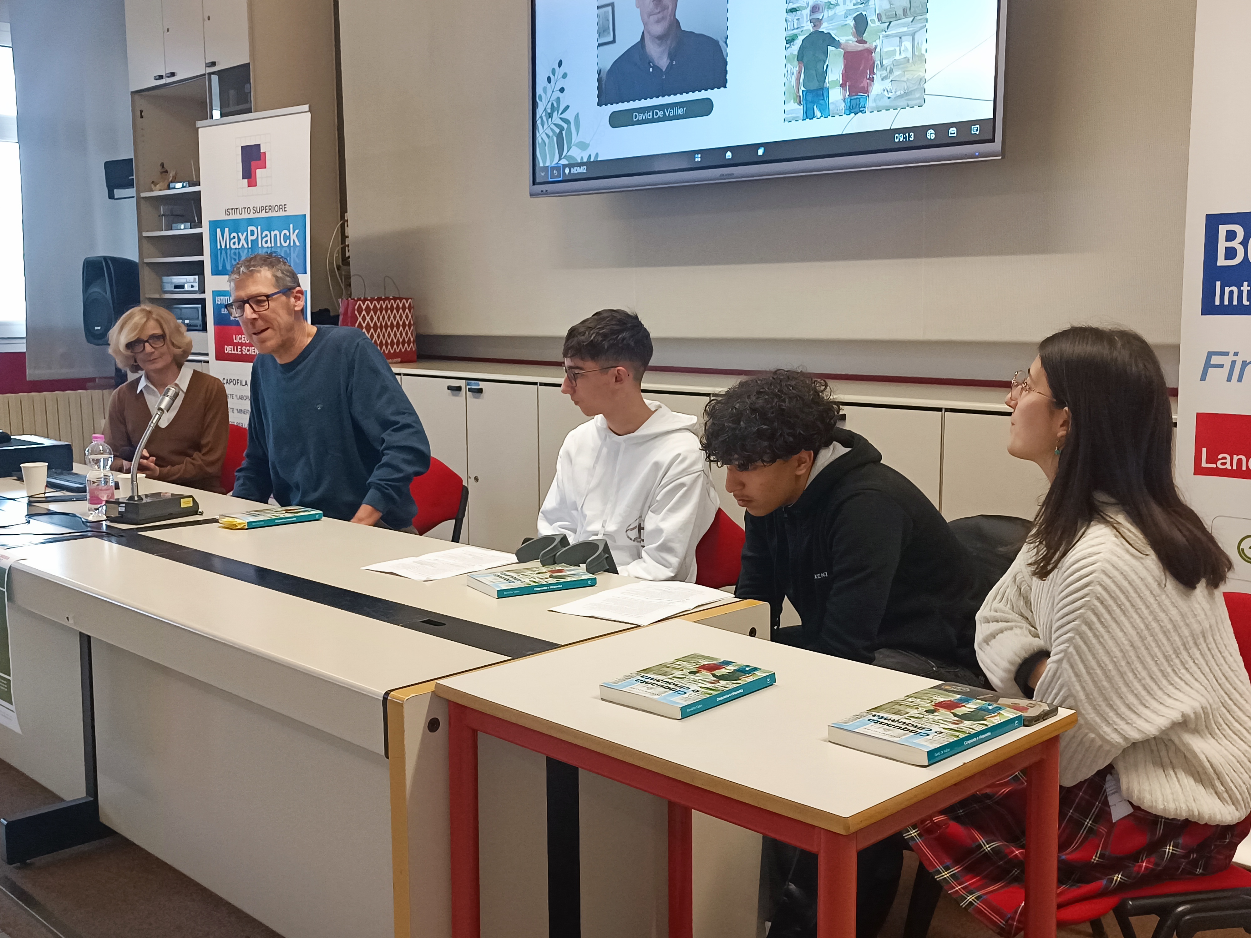 Foto dell'incontro di giovedì 7 marzo con l'autore e insegnante di matematica dell'istituto Paolo Alessandrini, che ha presentato il suo ultimo libro “Matematica in campo” edito nel 2023 da Hoepli.