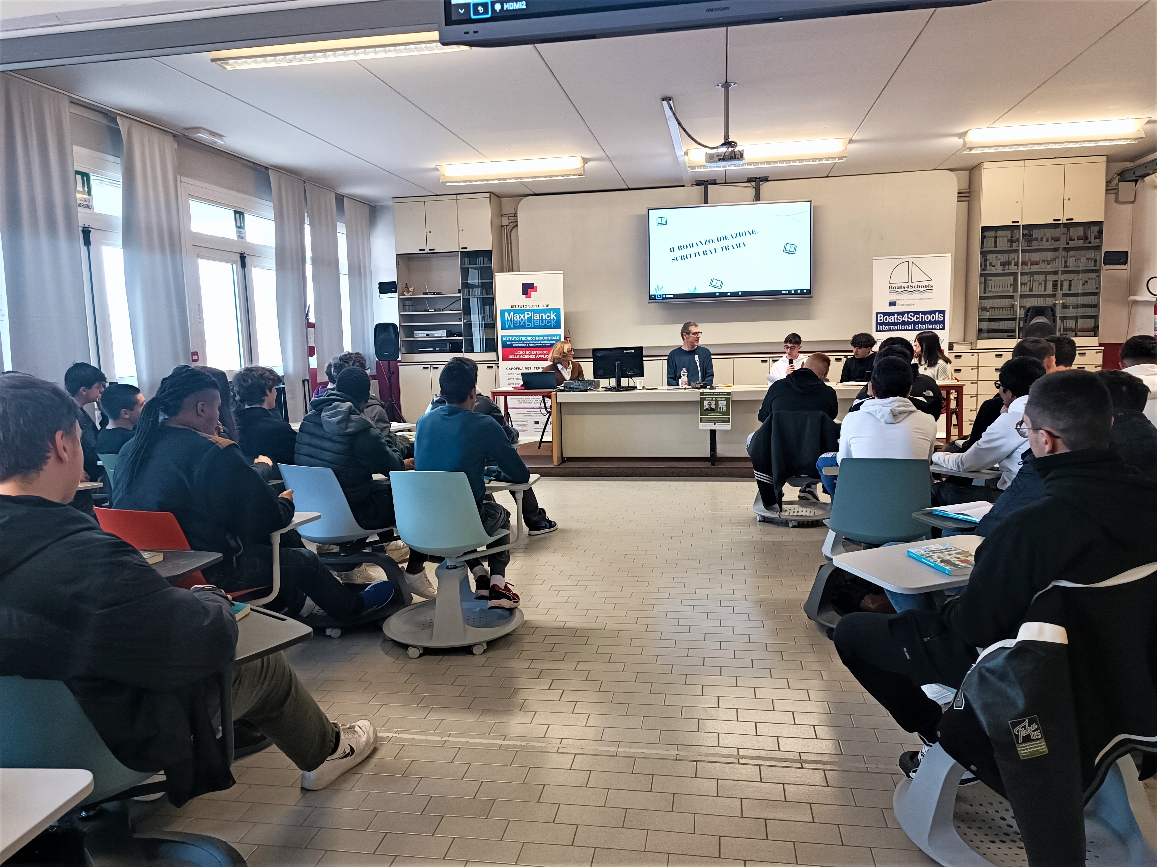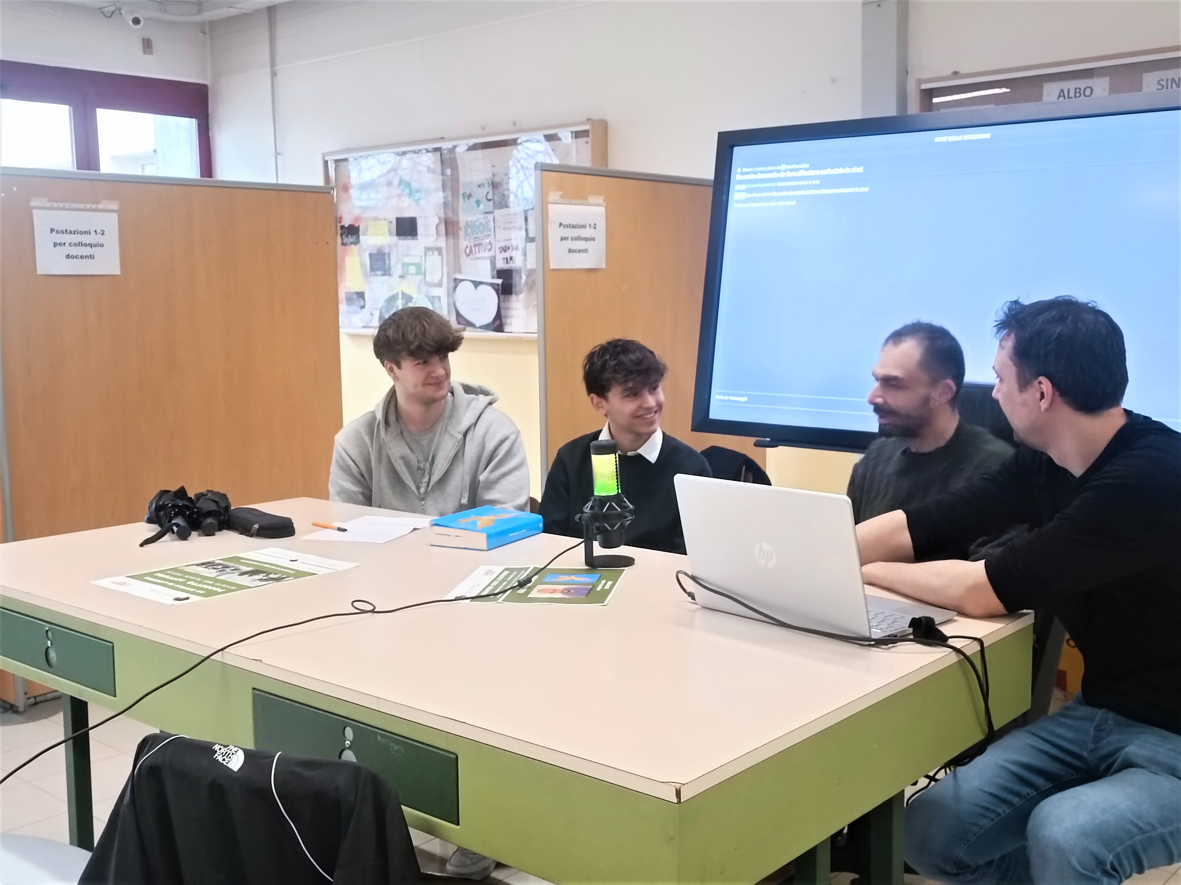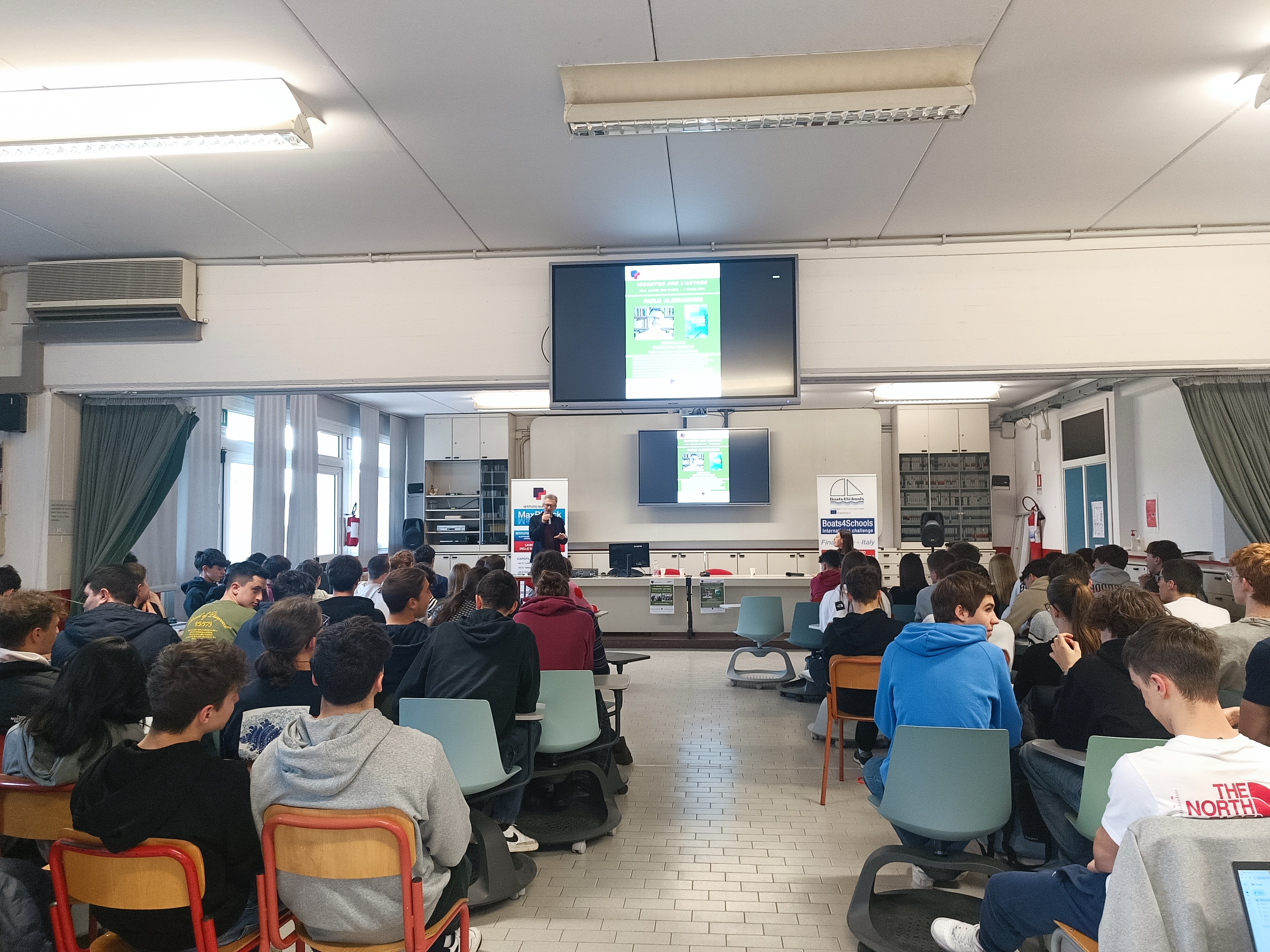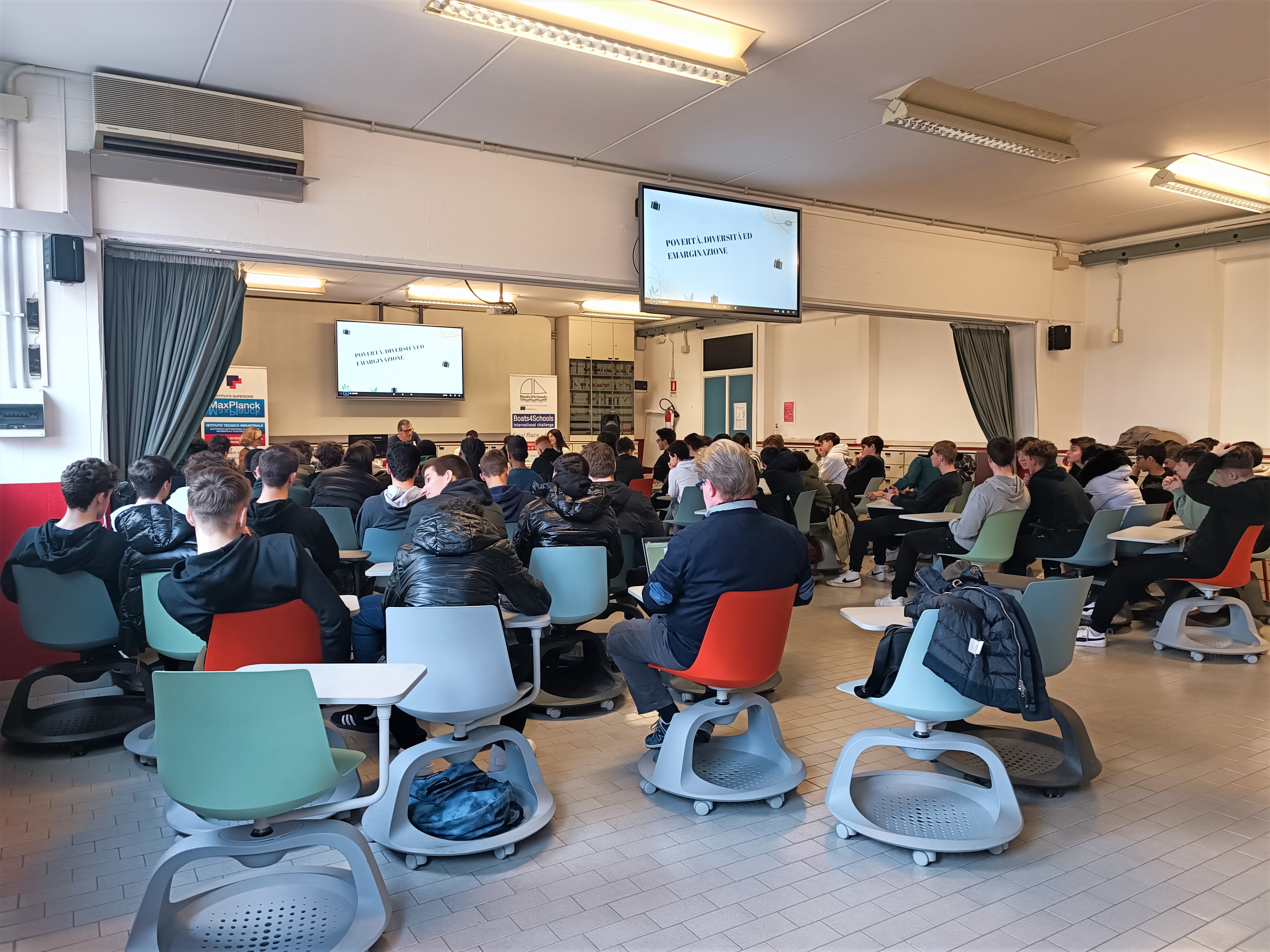 Foto dell'incontro di giovedì 7 marzo con l'autore e insegnante di matematica dell'istituto Paolo Alessandrini, che ha presentato il suo ultimo libro “Matematica in campo” edito nel 2023 da Hoepli.