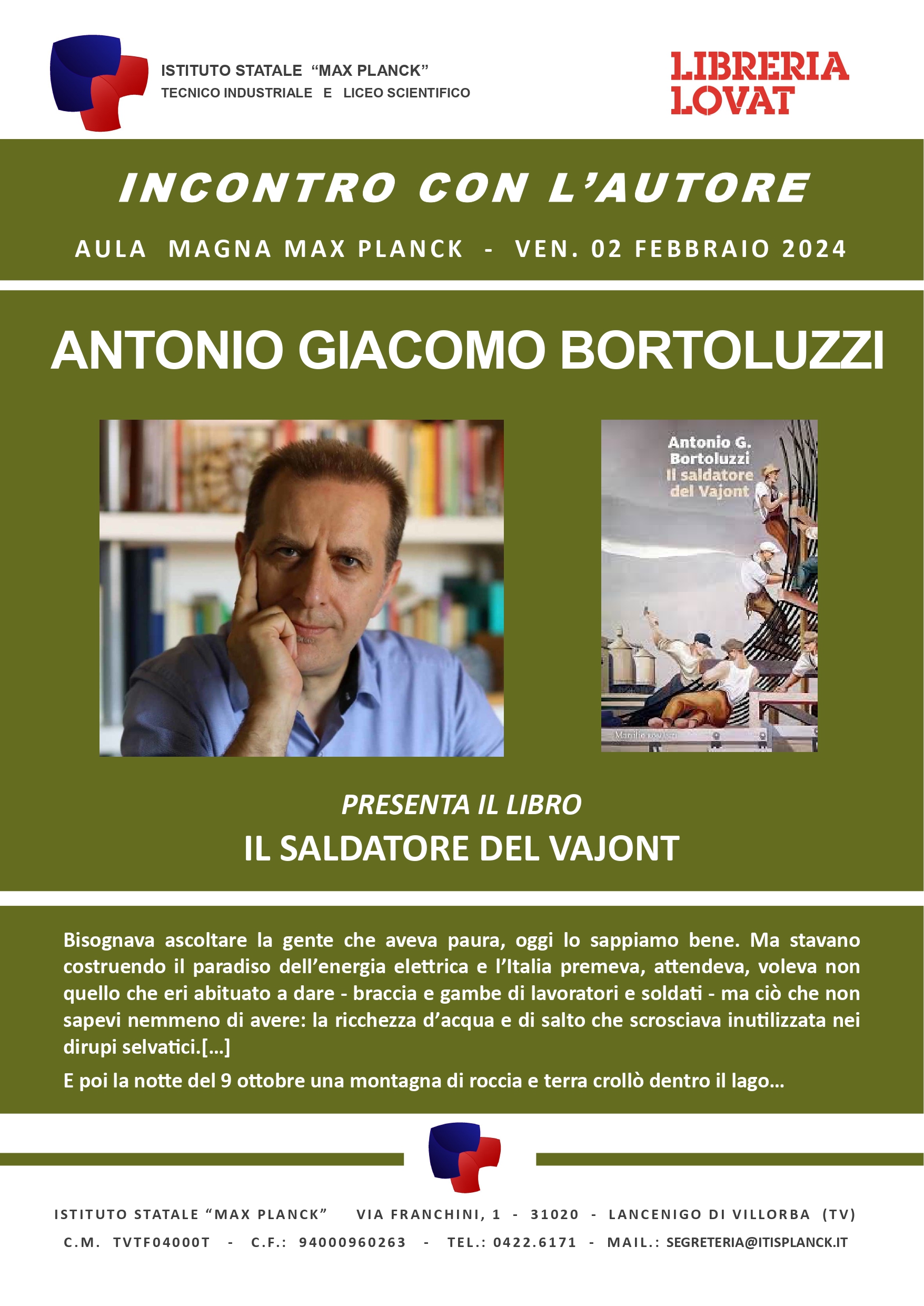 Foto dell'incontro con Antonio Giacomo Bortoluzzi, scrittore che ha presentato il suo ultimo lavoro “Il saldatore del Vajont” (edito da Marsilio)