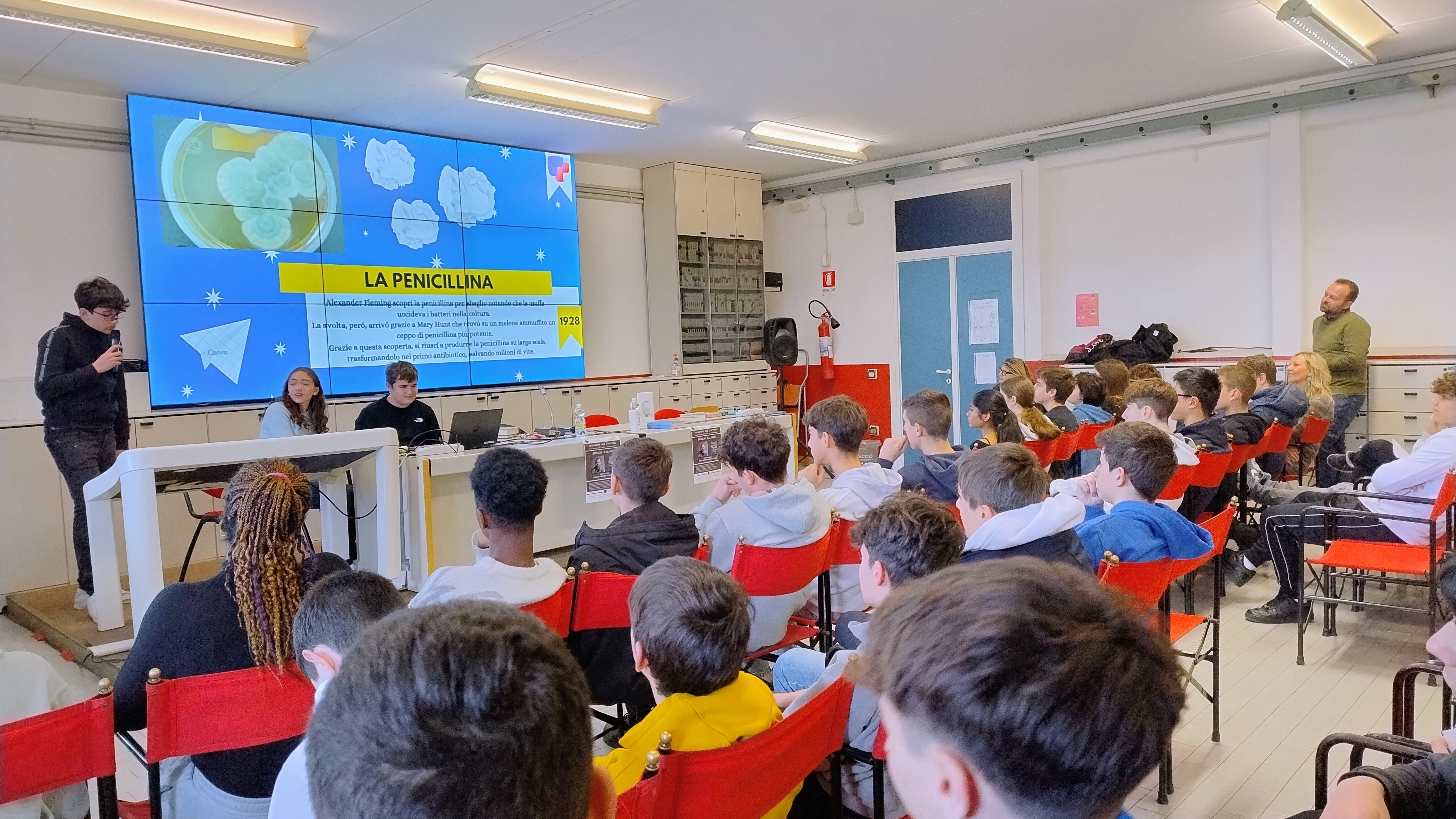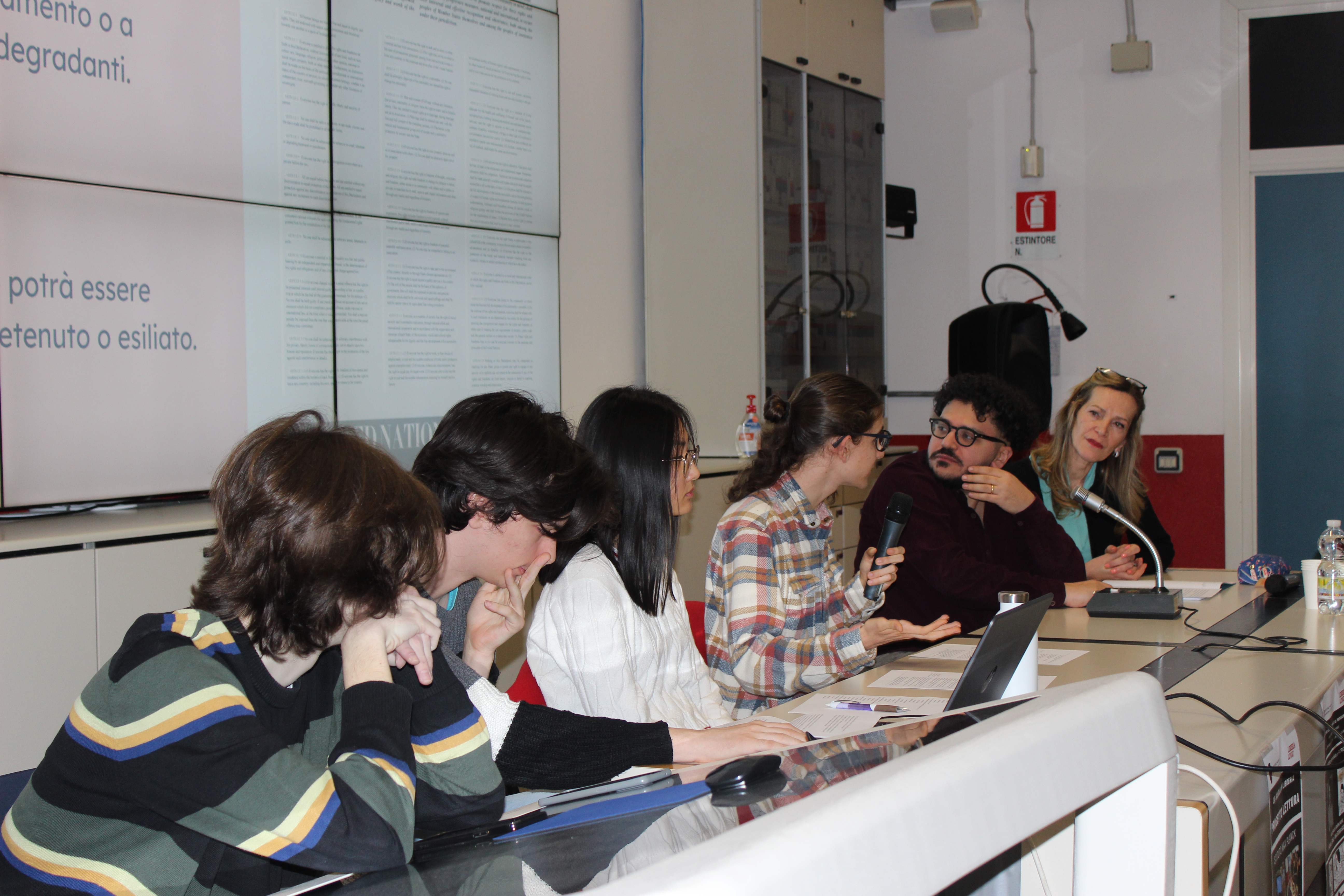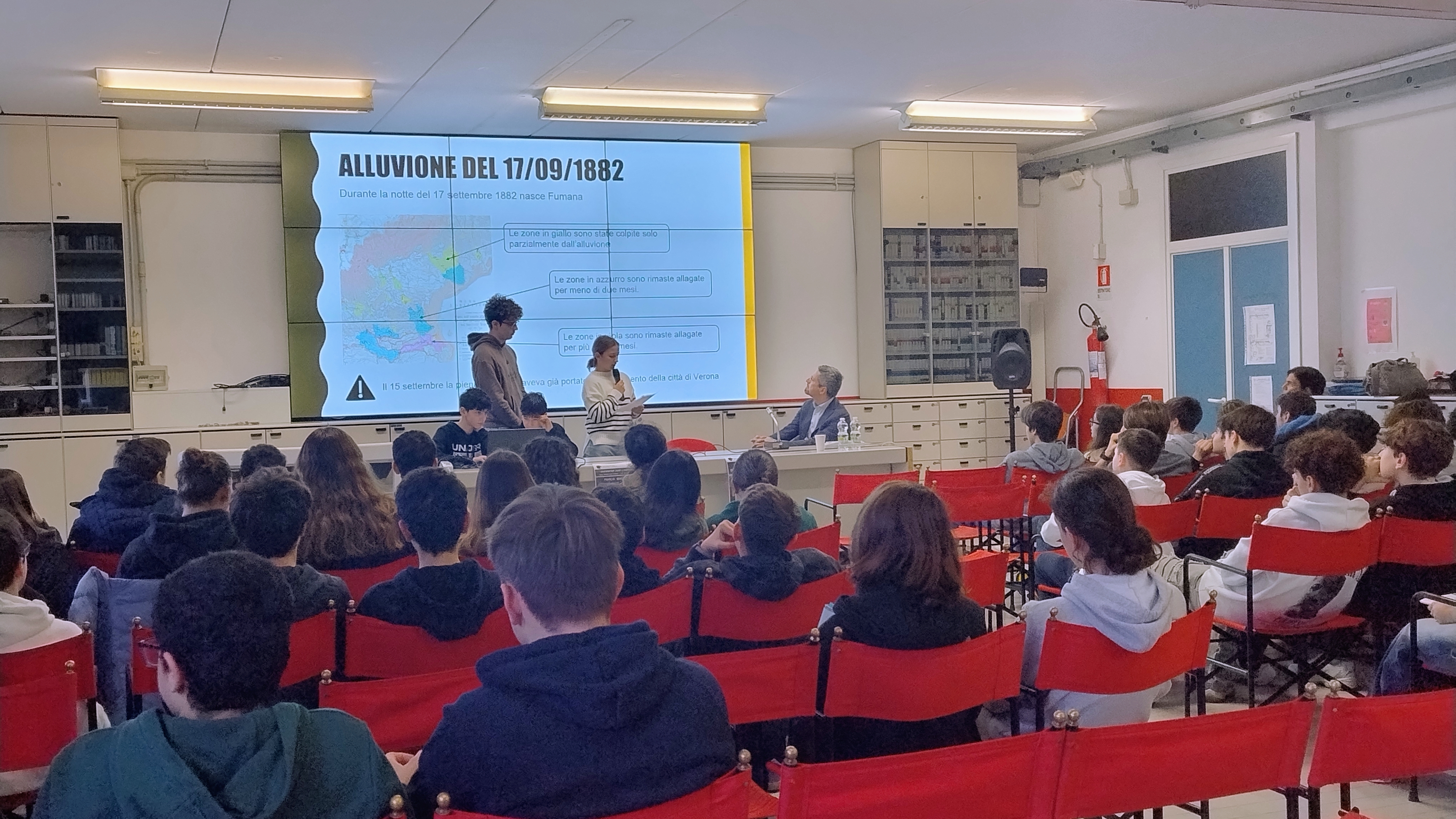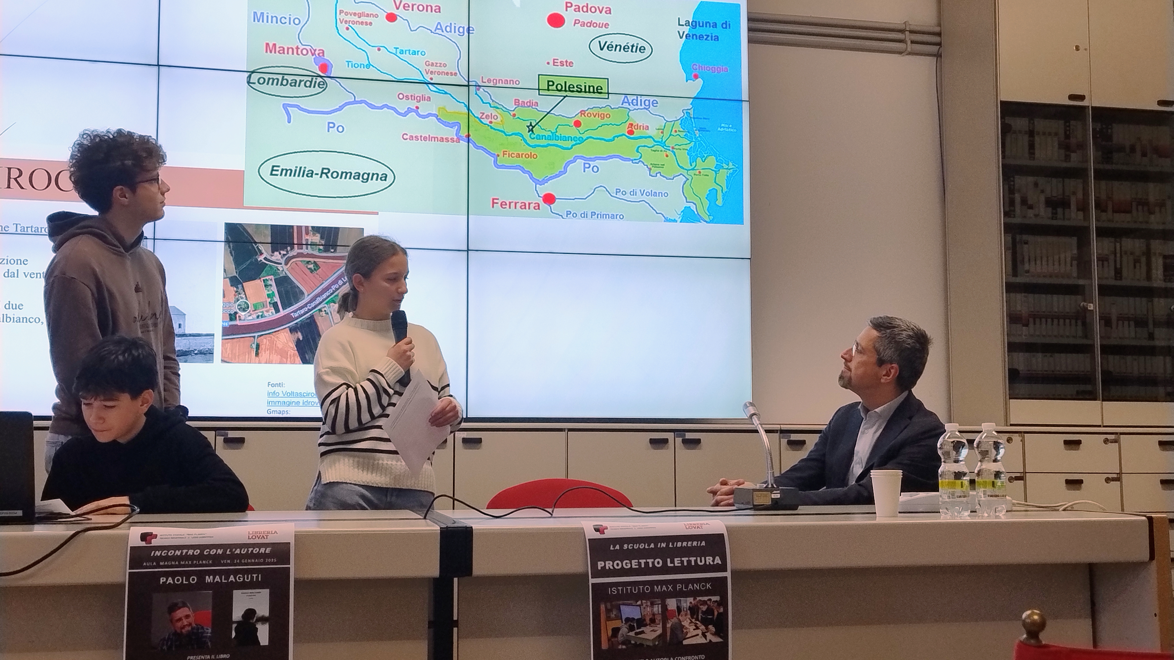 Foto dell'incontro di giovedì 6 marzo con l'autore Fabiano Massimi. Il fascismo ma anche le vicende personali di Mussolini, la grande politica e drammatici legami affettivi. Sono molti gli aspetti misteriosi che hanno acceso la curiosità degli studenti nel libro “Le furie di Venezia”.