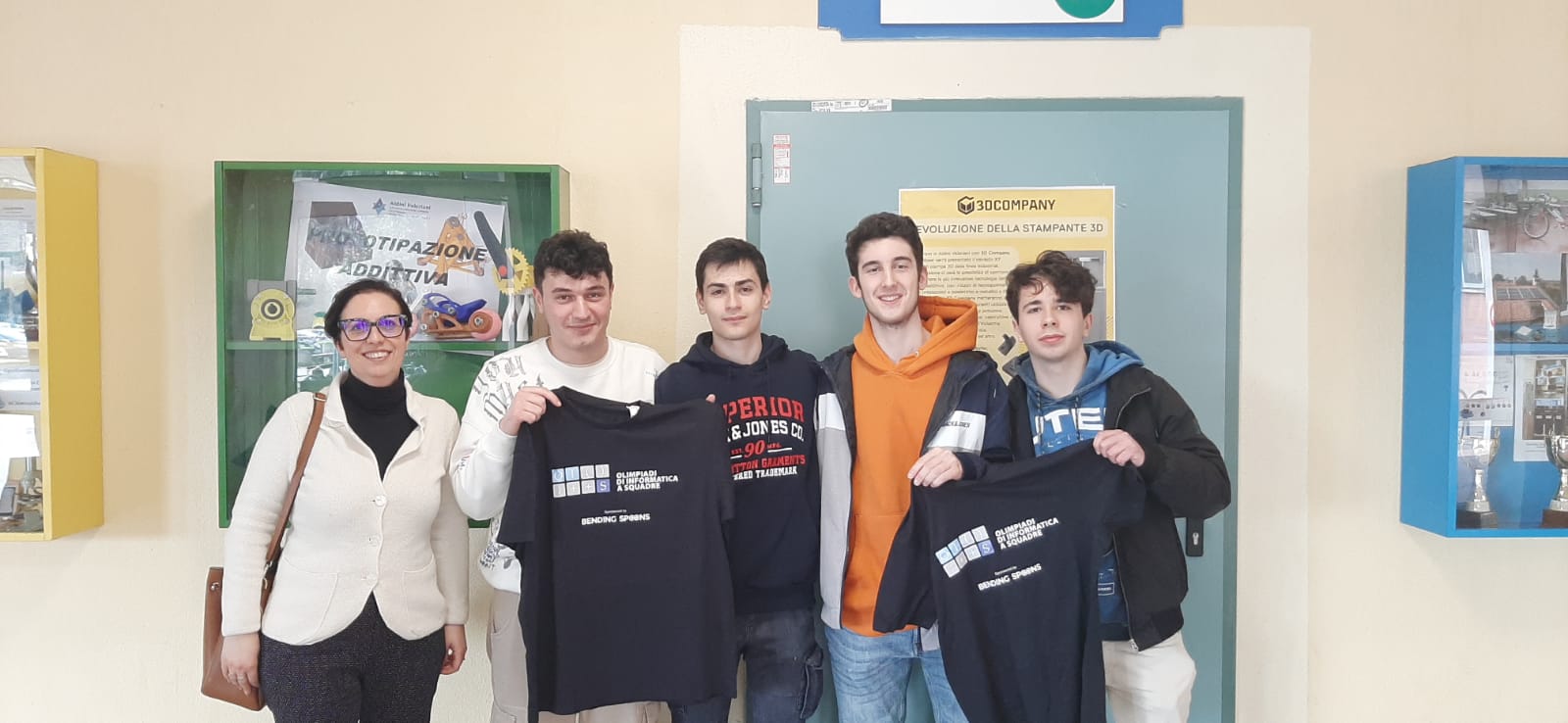 Ecco la nostra squadra che il 10 e l'11 marzo parteciperà alle fase finale delle olimpiadi di informatica a squadre in corso di svolgimento a Bologna. In bocca al lupo agli studenti Buonocore Alfonso, Morao Valentino, Zamuner Riccardo e Zanette Tommaso della classe 5BII. Un ringraziamento sentito alla referente, prof.ssa Mongelli per l'impegno profuso.