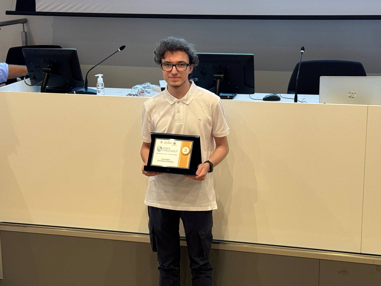 Complimenti allo studente Cino Alessio della classe 5AII che si è classificato terzo alla gara territoriale della CyberChallenge tenutasi all'Università Ca' Foscari di Venezia il 29 maggio 2024.