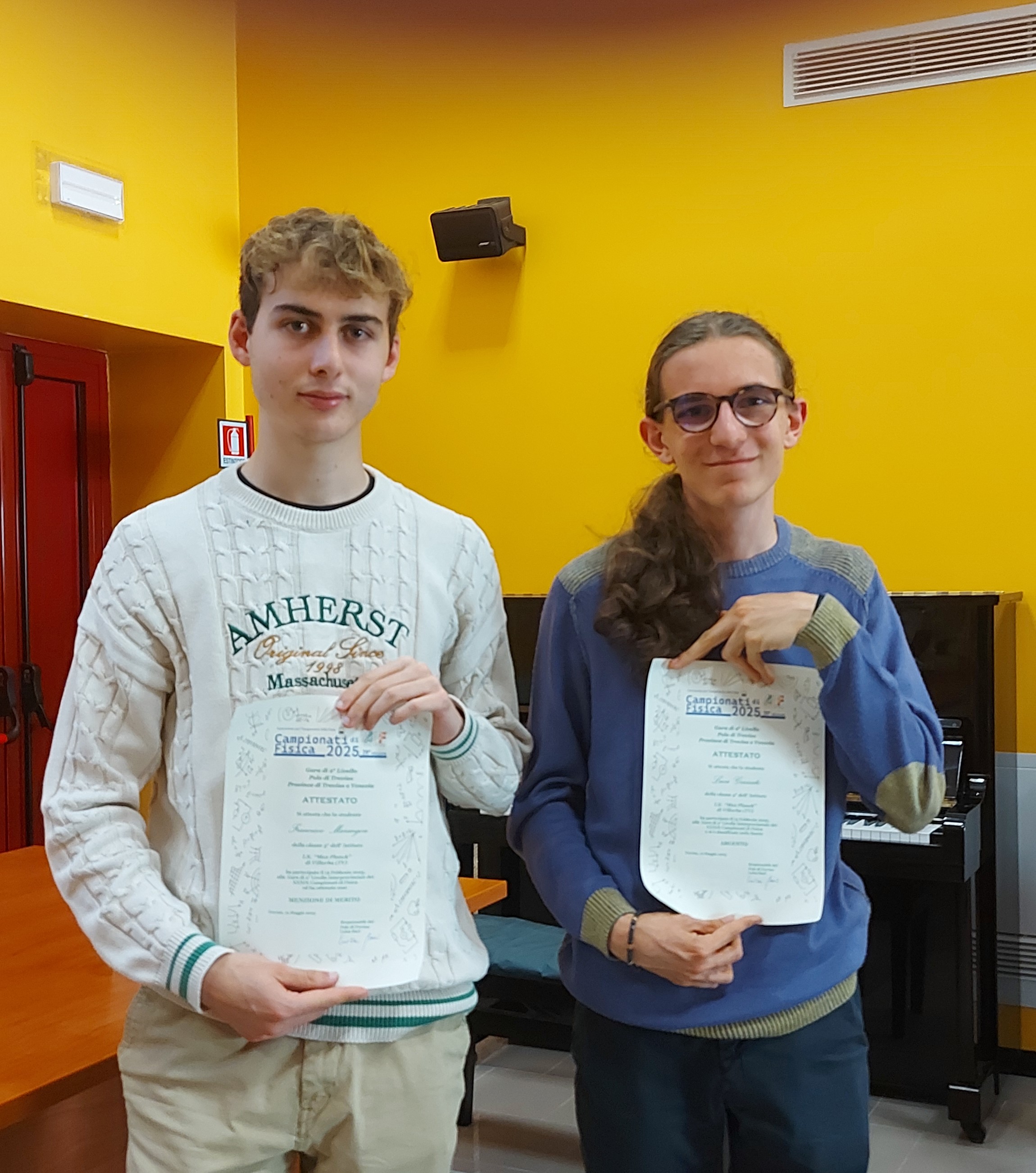 Congratulazioni ai nostri studenti che lunedì 12 Maggio 2025 sono stati premiati per gli ottimi risultati alla gara di secondo livello per le province di Treviso e Venezia dei Campionati di fisica 2025 presso il Liceo “Galileo Galilei” di Dolo (VE).