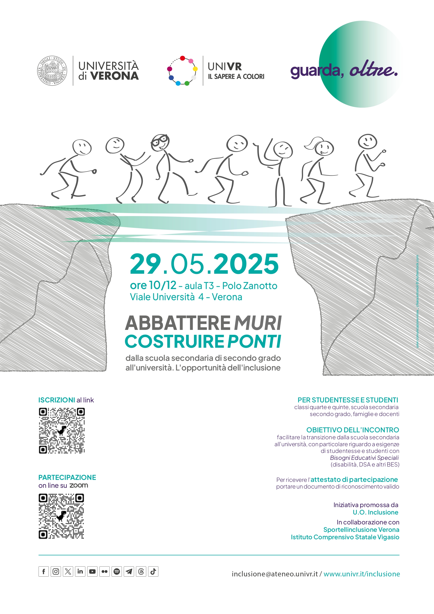 Abbattere muri, costruire ponti: dalla scuola secondaria di secondo grado all'università. L'opportunità dell'inclusione. 29 maggio 2025.
